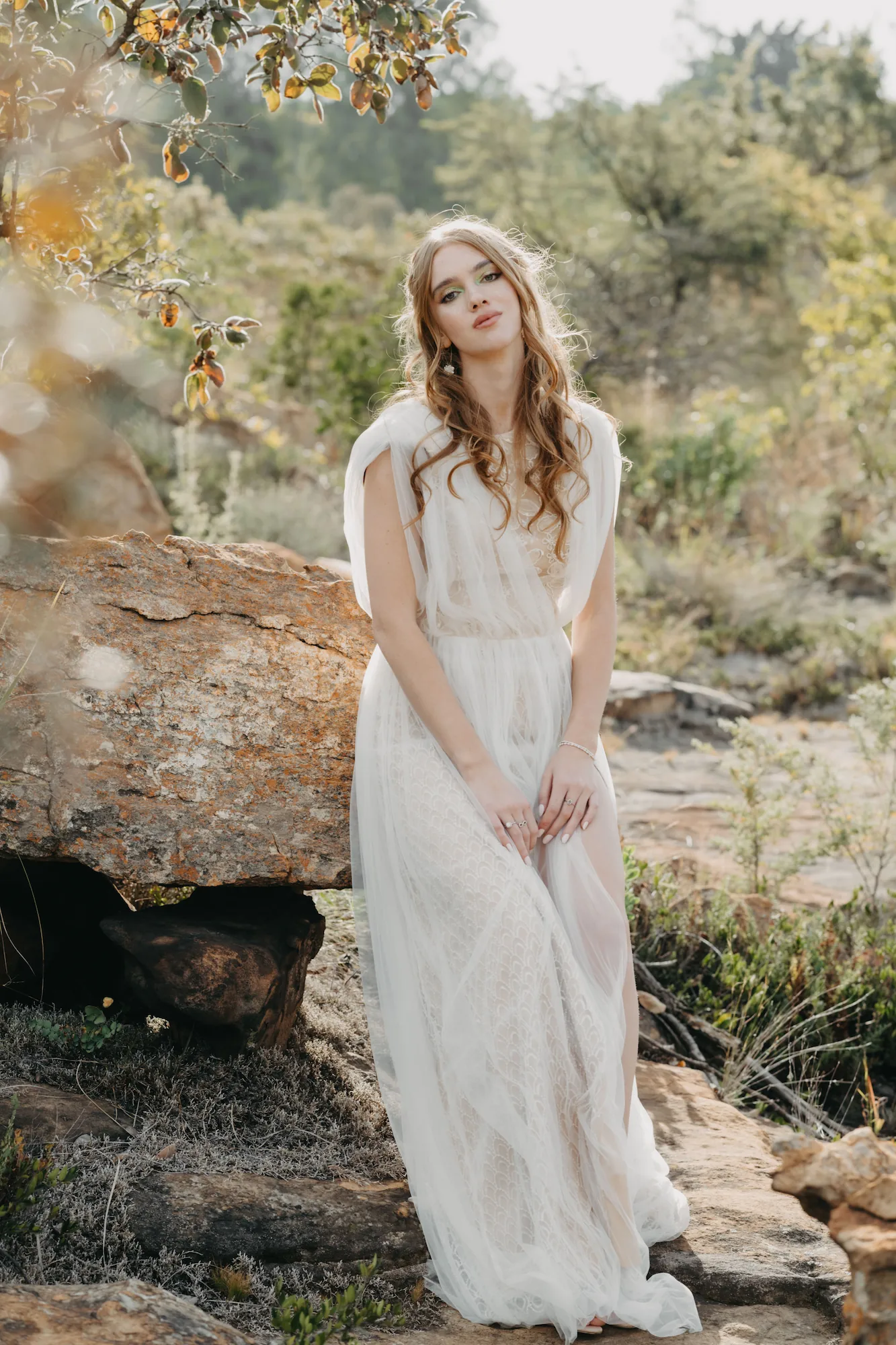 The Elara gown is perfect for bold, radiant brides drawn to natural landscapes, windswept elopements, or modern altars. It balances softness with power — a gown that floats, but never fades.
